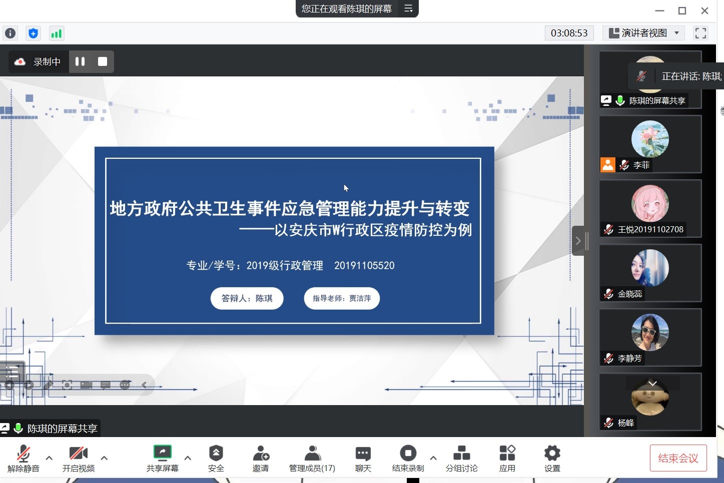 于2023年3月5日举行了2019级本科生毕业论文线上开题报告答辩会。2019级公共事业管理专业27人、行政管理专业33人、政治学与行政学专业41人,共计101人参加了开题报告会。