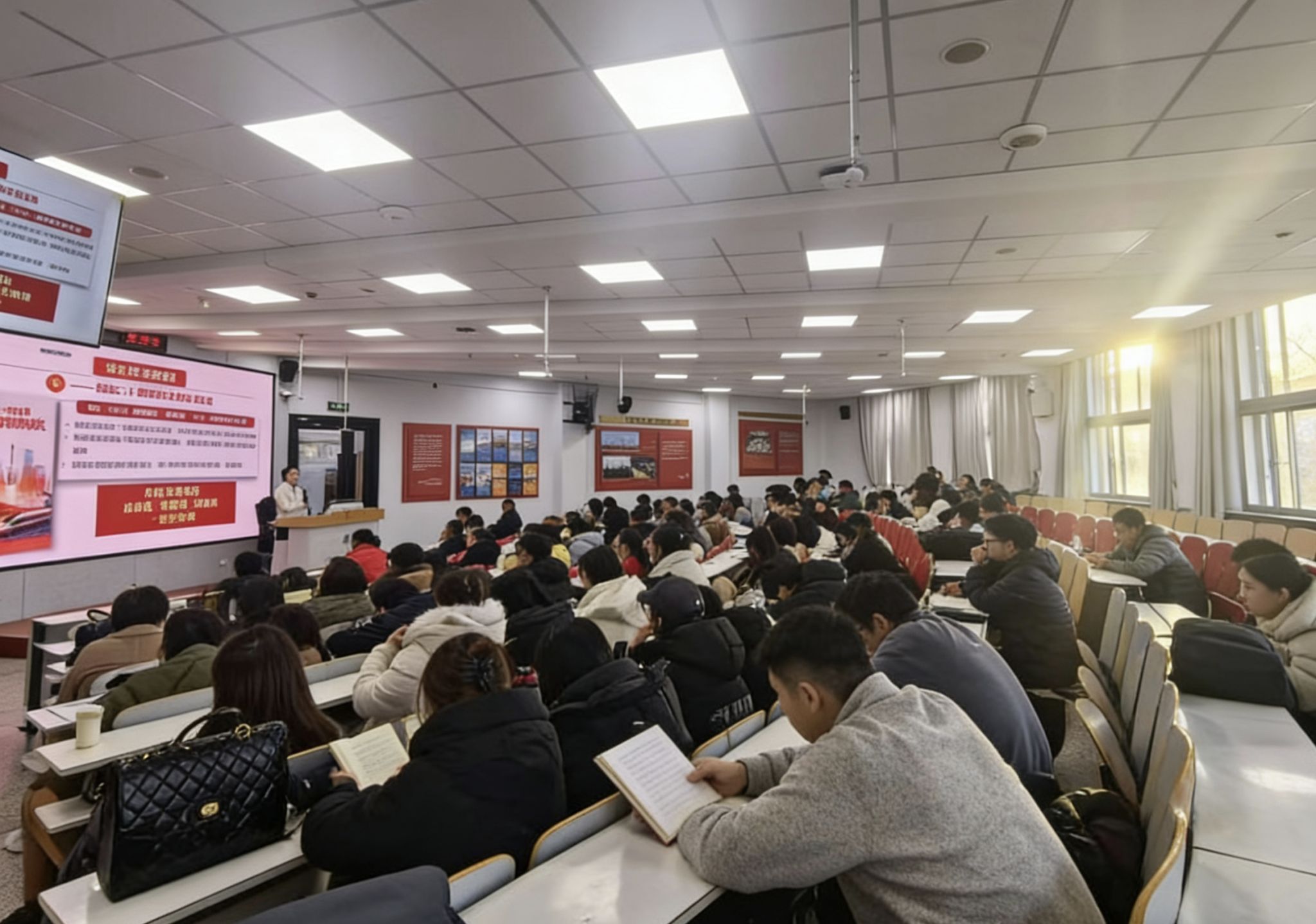 12月11日,国家治理学院党委、旅游学院党委和经济管理学院党委在赛罕校区田楼第12公共教室联合举办了学习贯彻党的二十届四中全会精神宣讲会。我校学习贯彻党的二十届四中全会精神宣讲团成员、马克思主义学院副教授白文静进行专题辅导,各单位全体教职工以及学生代表参加报告会。